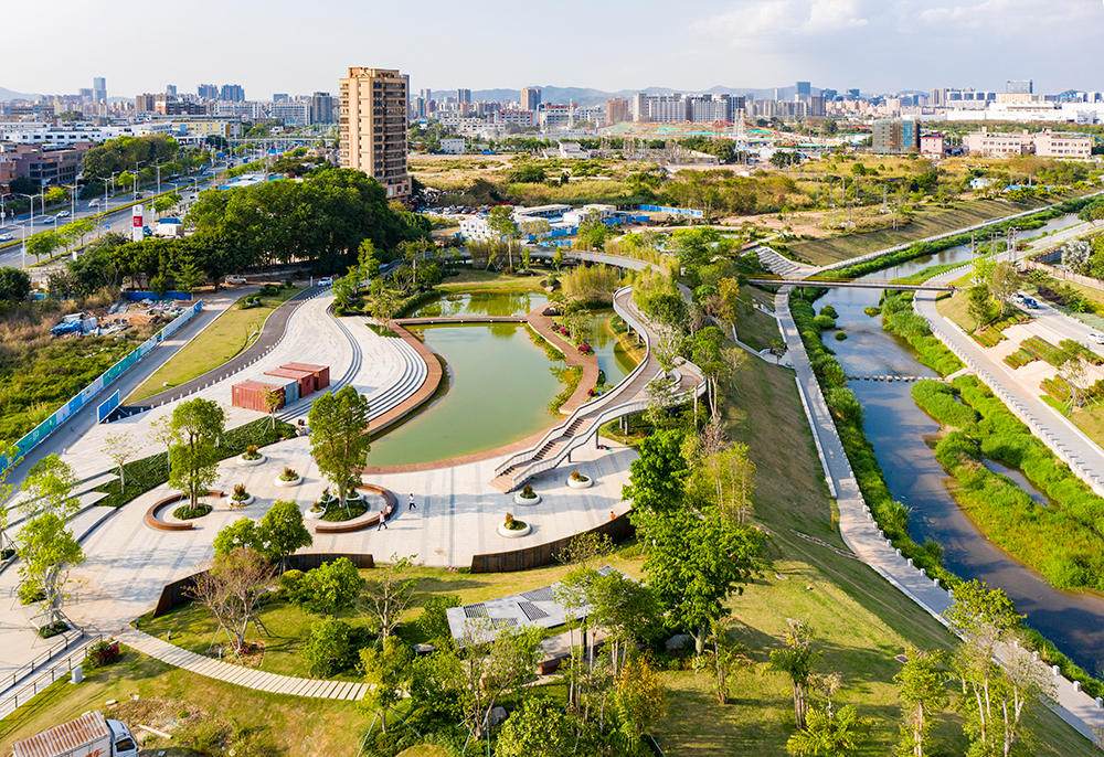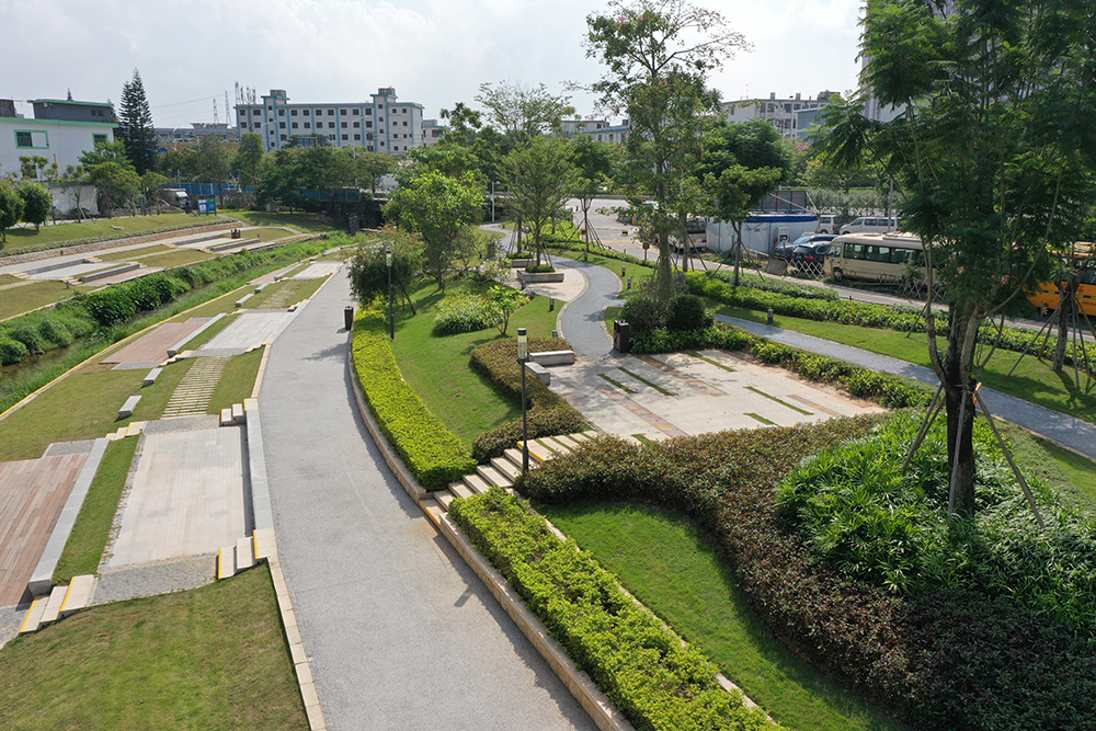 本項目長14.6公里,景觀面積91.3公頃,是集設計、采購、施工為一體的大型河道景觀綜合整治工程。主要景觀節點有茅洲之源、同觀濕地、茅洲畫卷、東坑橋、休閑運動場地、橋底體育運動公園等,是以高水平設計、高標準施工打造的光明區“生態脊梁”,是集水清、岸綠、景美于一體的茅洲河綠色生態長廊,為周邊居民提供了優質的休閑漫步空間。