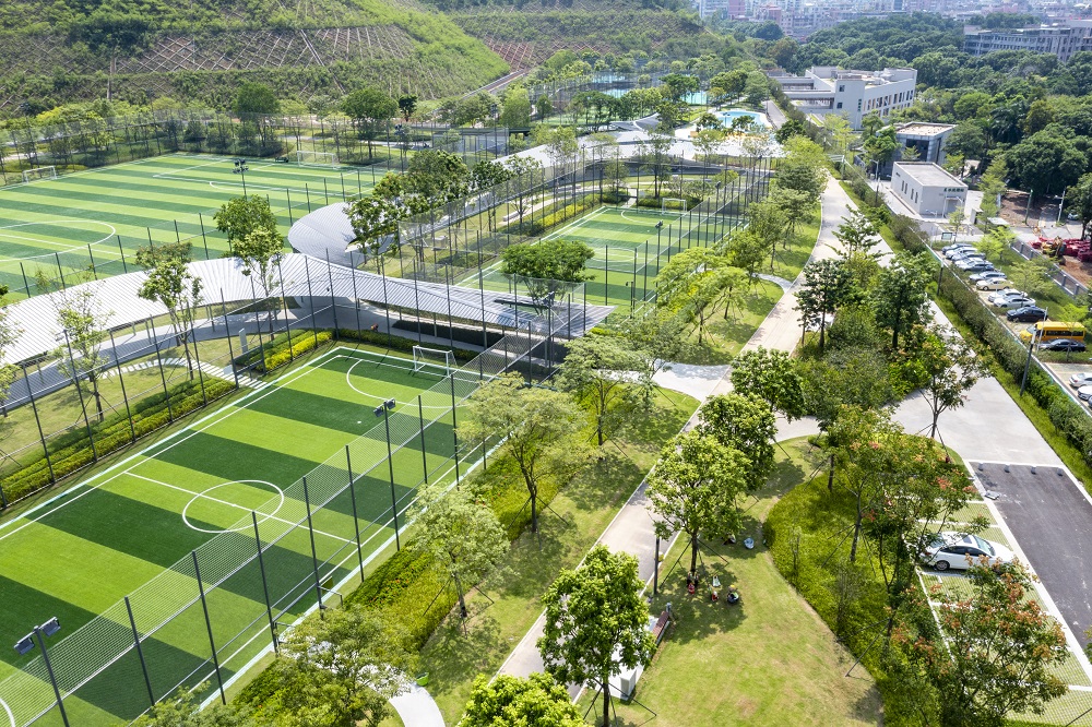 龍城公園活力谷位于深圳市龍崗區如意路以北、公園路以東的龍城公園內西南側,靠近公園西出口,已建成開放面積約10公頃。園區以“超級秀場”為主題靈感,打造活力秀場、時尚秀場、生態秀場。園區分為地鐵上蓋區、活力綠谷區兩區。三環串聯十園,使整個園區設計重點突出、色彩鮮明。園區充分吸納市民多元化的文體生活需求,科學合理配置體育健身設施,建設籃球場、足球場、網球場等22片運動場地,設置兒童游樂設施、滑板場、健身步道等活力設施,堅持全季活動、晝夜可游、全民鍛煉的服務理念,實現場地與活動、場地與人群、景觀與構筑、動區與靜區的多重互動,突顯場地的活力定位,滿足全民健身需求,打造“公園+活力”新業態。